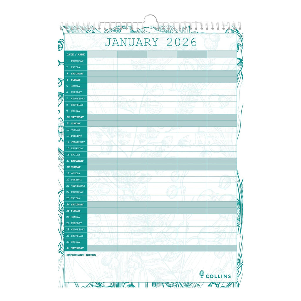 2026 WALL CALENDAR - The Collins Wall Calendar Planner 2026 includes wired binding to easily flip between months and a calendar hanger loop for hooking into your wall at home or in the office. Don’t leave things to chance, keep track of your goals and your schedule. Running January to December, with a fresh new A3 page per month, you can plan out your full 2026 calendar for the whole family.