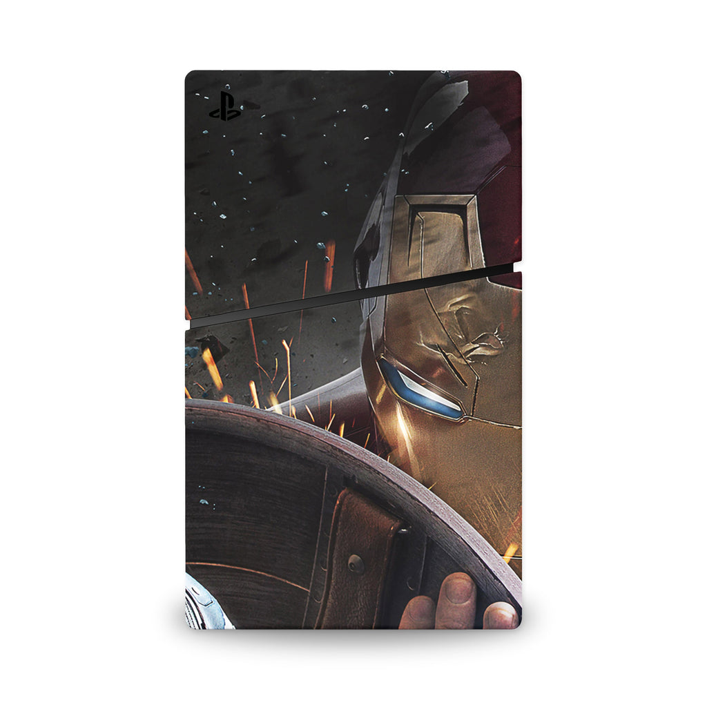Techno Vanguard brings high-tech armor aesthetics to your PS5 Slim Digital. Sleek metallic visuals and energy-core accents reflect innovation and power — perfect for gamers with genius-level ambition.