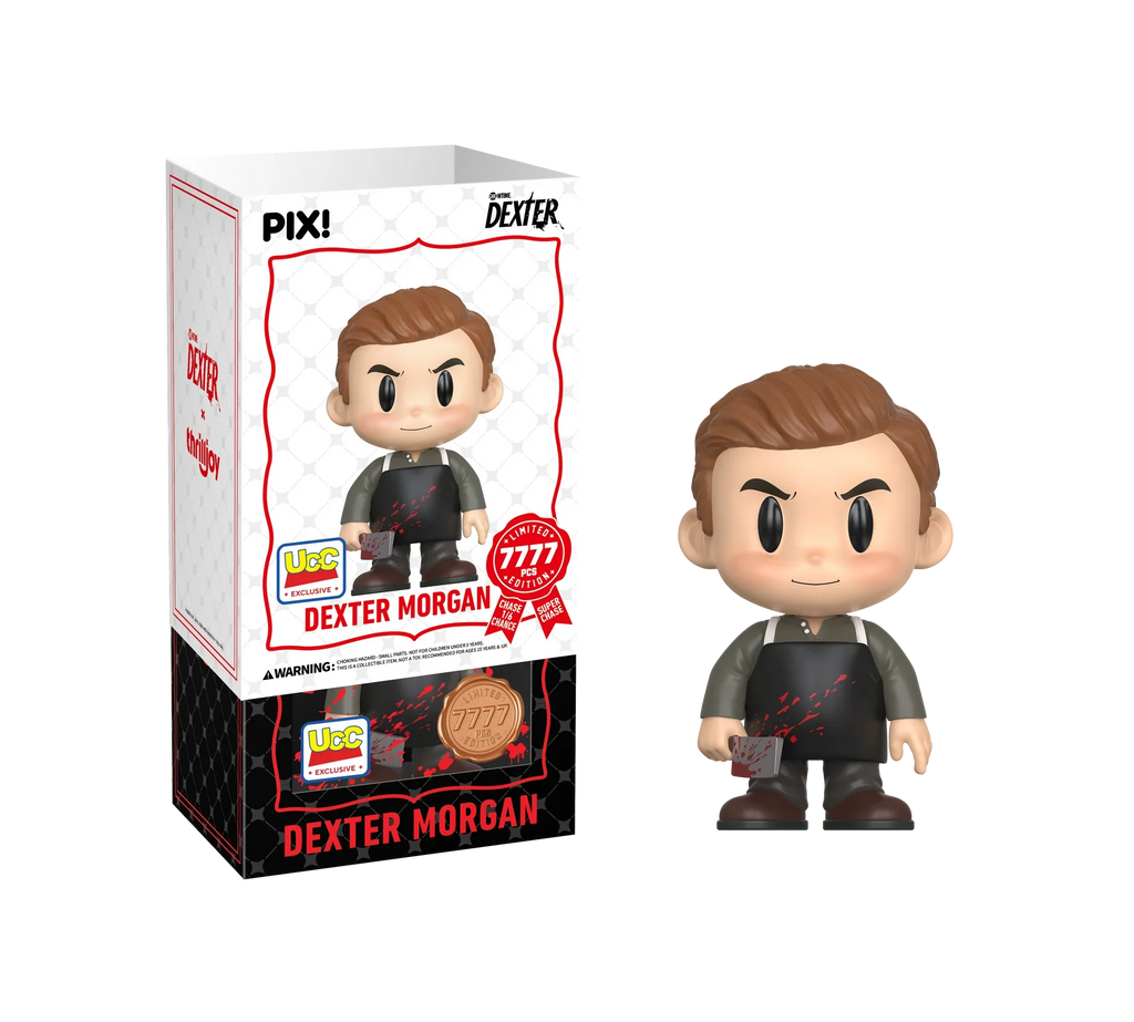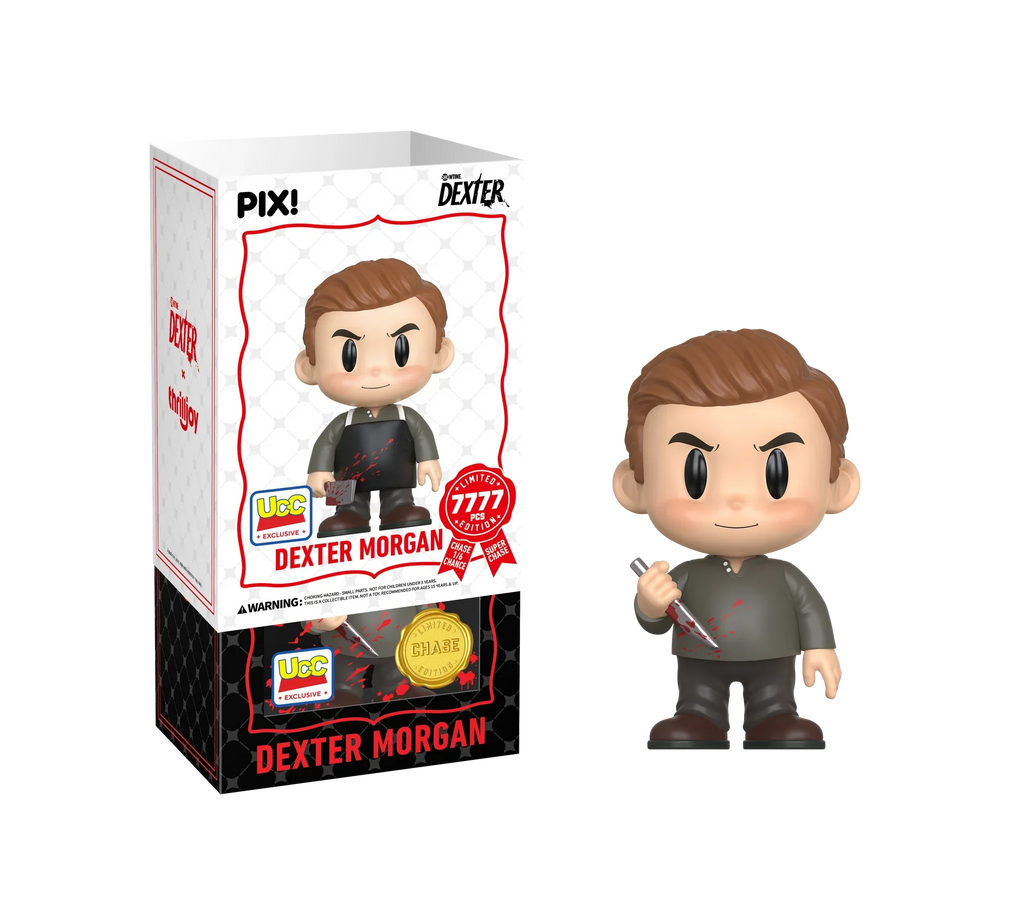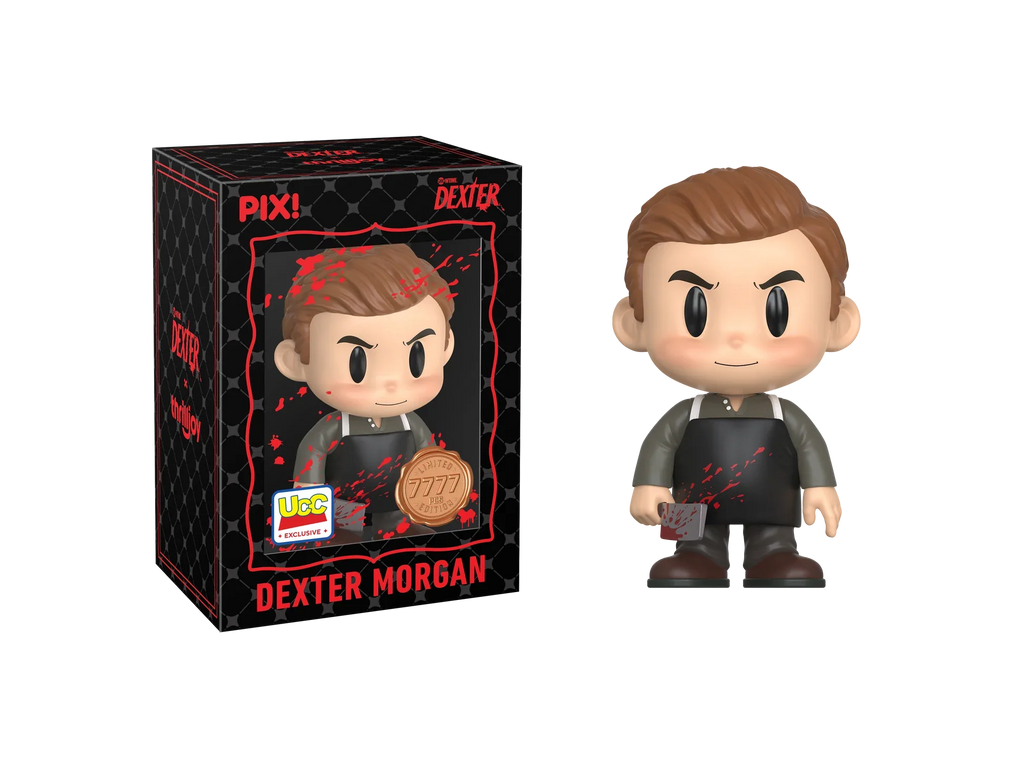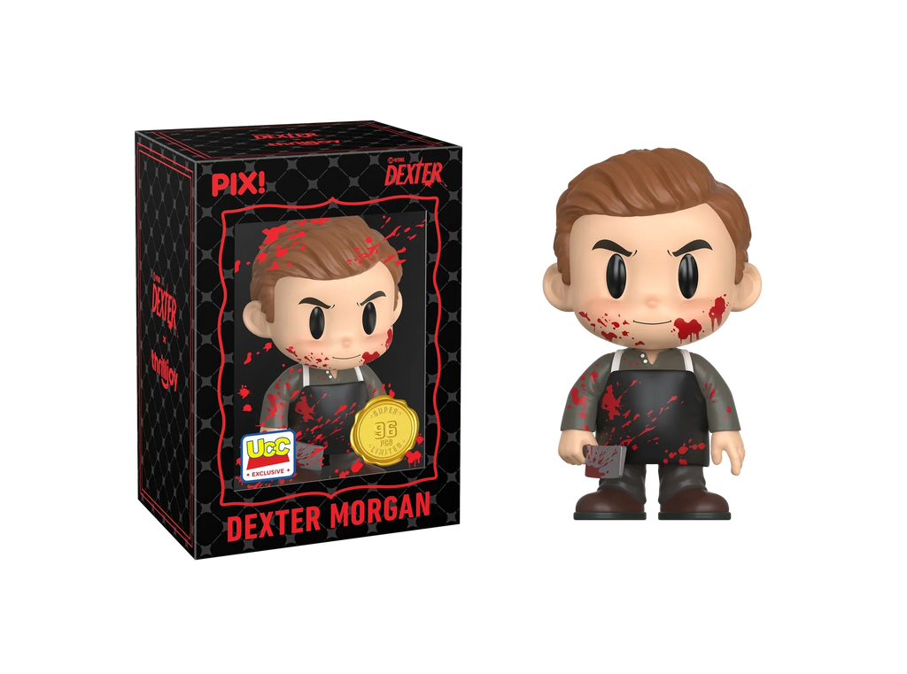 Are you ready for this dark passenger? Featuring Dexter Morgan in his signature black apron and long-sleeve shirt, gripping a bloody cleaver with a mischievous look in his eyes! Dexter is leaving a trail of blood all the way to your shelves! This PIX! is perfect for fans who love all things horror!