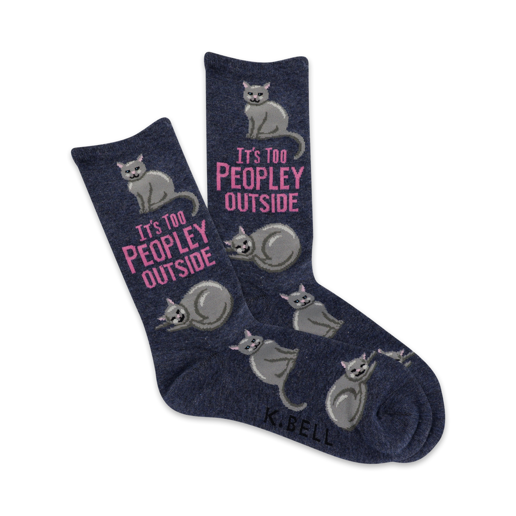 These Too Peoply socks will remind you that sometimes you just want to stay in and avoid the hustle and bustle of the world. With a dark blue background and a pattern of gray cats and the words 'It's Too Peoply Outside' written in pink, these socks are perfect for those days when you'd rather curl up with a good book and your feline friends than deal with the outside world. Let the cat socks be your purr-sonal reminder to take a break and recharge.