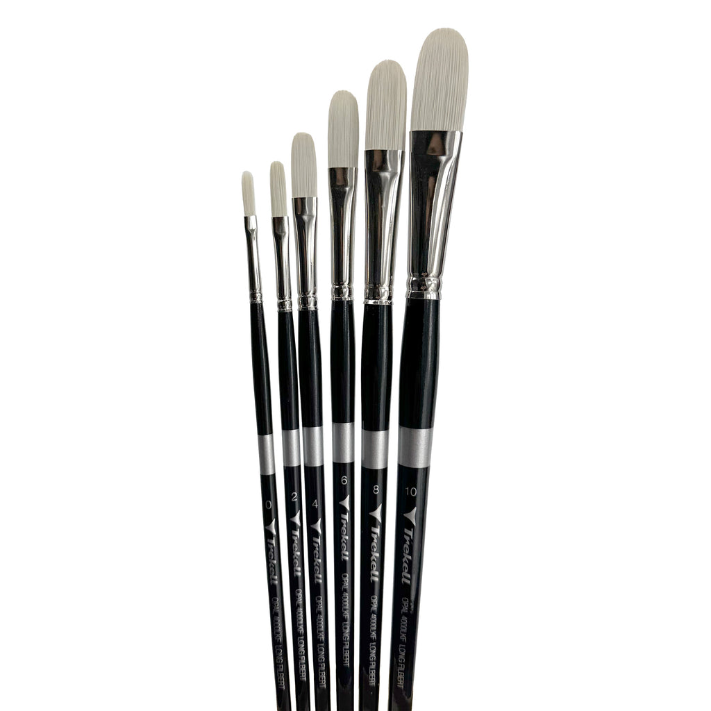 Trekell Opal Synthetic Hog Bristle Long Handle Artist Brush - Complete Brush Set - Long Filbert