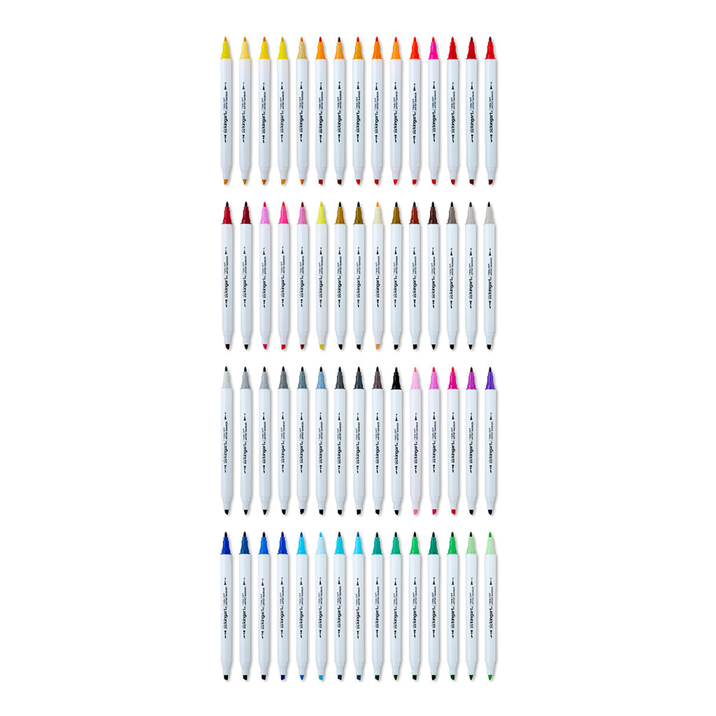 You’ll be amazed and delighted by what you can do with this set of 36 sketch markers. Broad strokes or fine lines, you choose with our Studio Twin-Tip™ Permanent Alcohol-Based Sketch Markers, The single reservoir ensures consistent color and an easy, effortless flow. Great for illustration and any art project. Suitable for beginning and experienced artists, these art markers offer a range of colors and are dual-tipped, with a fine tip at one end for precise lines and a chisel at the other for coverage and broad strokes.