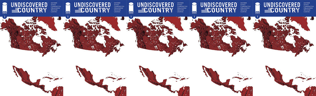 SERIES PREMIERE! This November- New York Times bestselling writers SCOTT SNYDER (WYTCHES- A.D.: AFTER DEATH) and CHARLES SOULE (CURSE WORDS- the forthcoming novel Anyone) will team up with artists GIUSEPPE CAMUNCOLI (The Amazing Spider-Man- Darth Vader- Hellblazer) and DANIELE ORLANDINI (Darth Vader) and 2019 Eisner Award-winning colorist MATT WILSON (THE WICKED AND THE DIVINE- PAPER GIRLS) to embark on an epic adventure in the brand-new ongoing series- UNDISCOVERED COUNTRY! In this special oversized first issue- readers will journey into the near future- and an unknown nation that was once the United States of America-a land that's become shrouded in mystery after walling itself off from the rest of the world without explanation over thirty years ago. When a team seeking a cure for a global pandemic breaches U.S. borders- they quickly find themselves in a struggle to survive this strange and deadly lost continent!