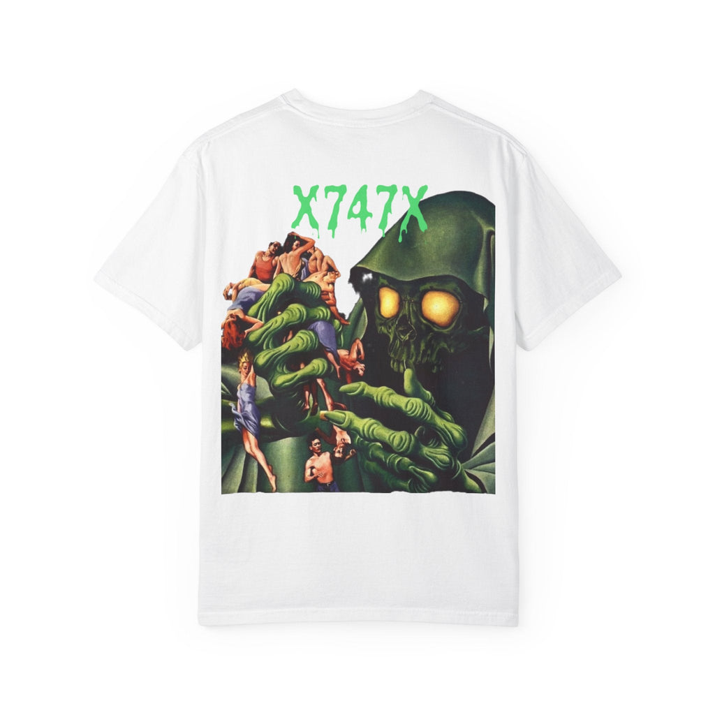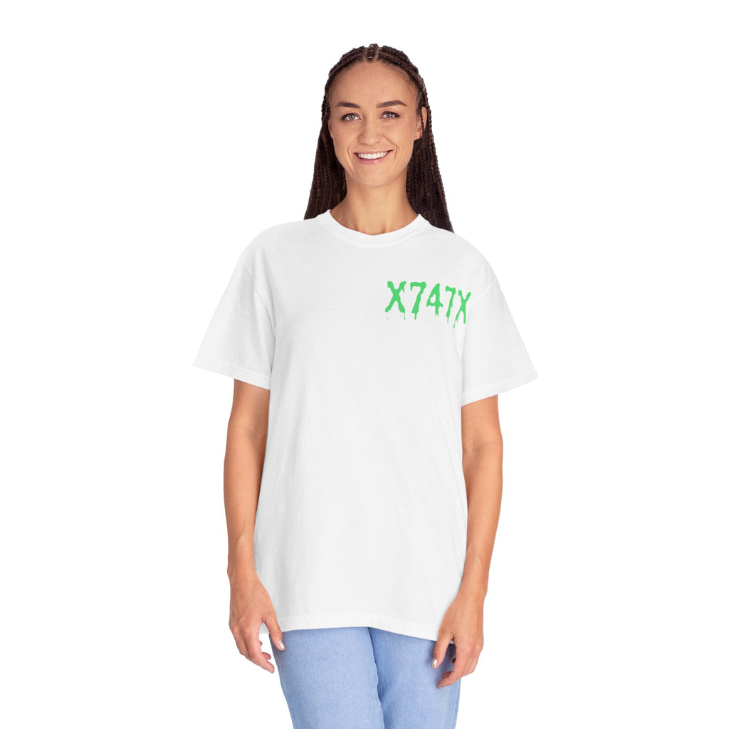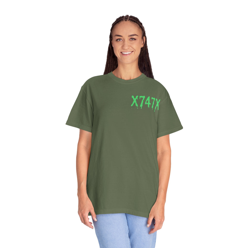 This garment brings a neon-edge energy to your everyday wardrobe. The X747X Neon Reaper graphic feels like a late-night alleyway vibe: electric lines, stark contrast and a hint of danger — bold without shouting. Wear it when you want to stand out in a crowd, at underground shows, skate sessions, or those nights that stretch past midnight. The dye-softened cotton settles against skin comfortably, and the relaxed cut leaves room for movement. It’s for people who collect experiences and stories — those who prefer their style to whisper attitude and keep conversation starting.