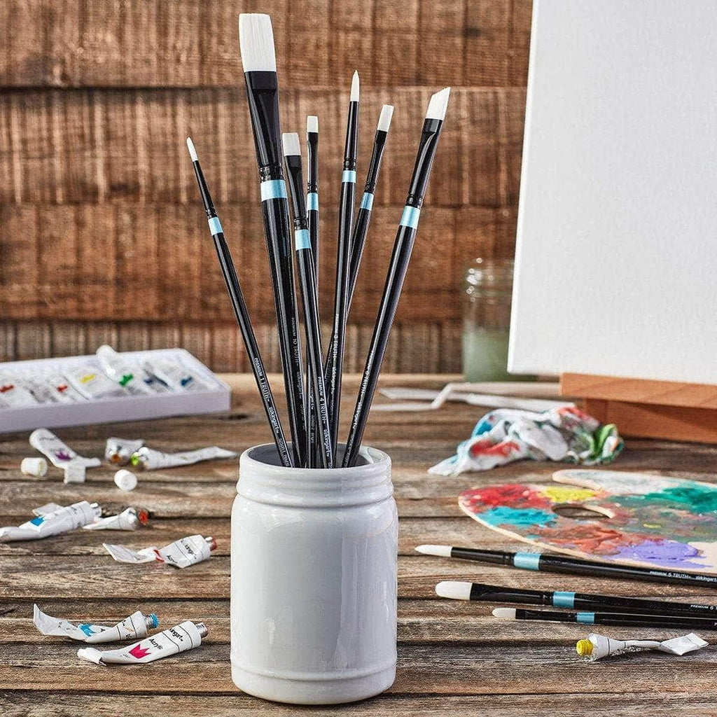 KINGART® Premium White Taklon Truth™ Series Oil & Acrylic Long Handle Artist Brushes, Gift Box, Set of 10