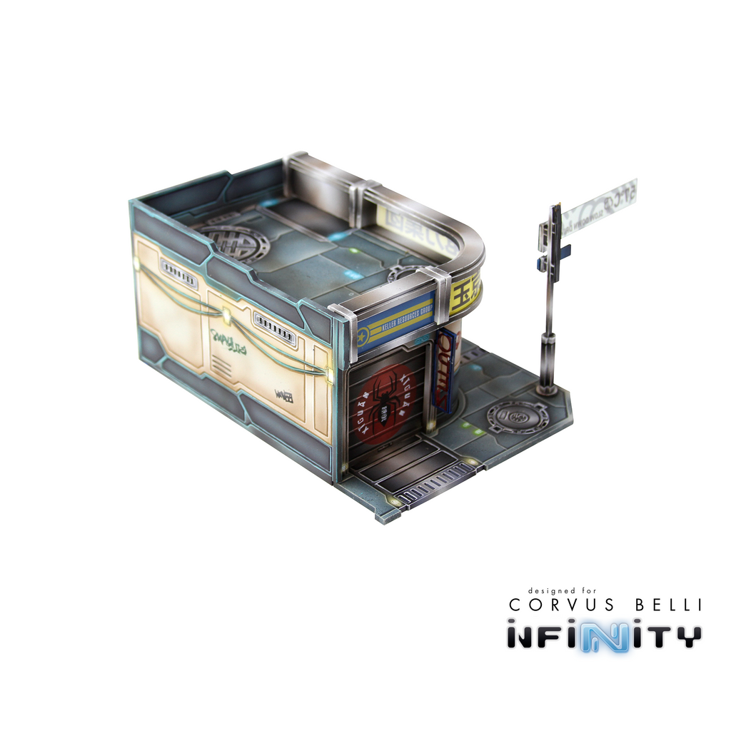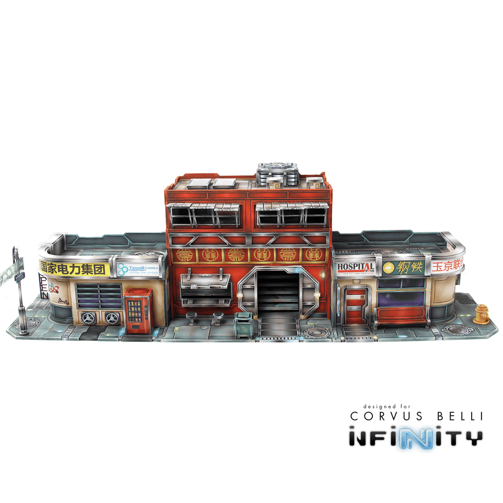 The Xǐguǎn Shop is a Yu Jing-themed urban terrain designed for Infinity the Game. This MDF and Acrylic building kit are perfect for any 25-35mm scale sci-fi settings.