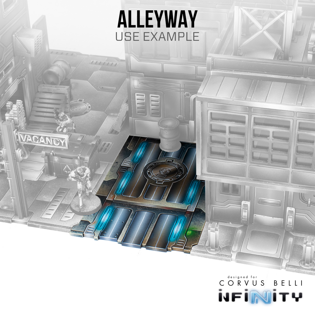Xiguan is Yu Jing-themed urban terrain designed for Infinity the Game. The buildings, sidewalks, alleyways, and back alleys are designed to interlock in interesting ways to create any density of future urban sprawl that you can imagine.