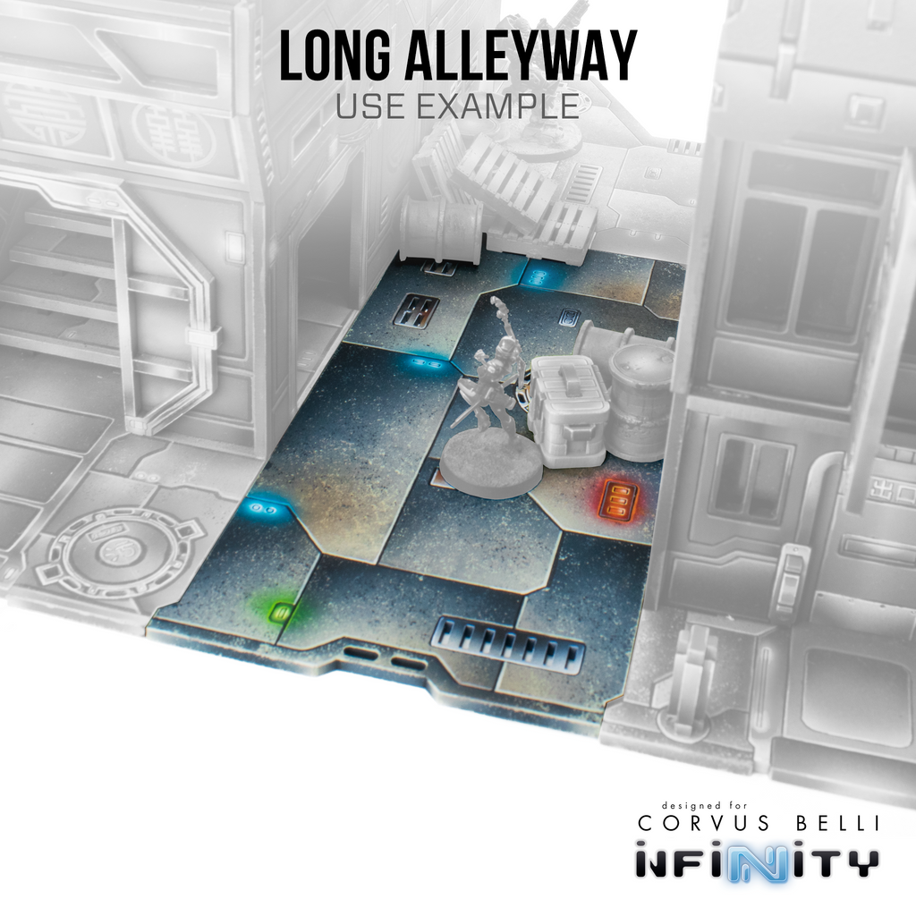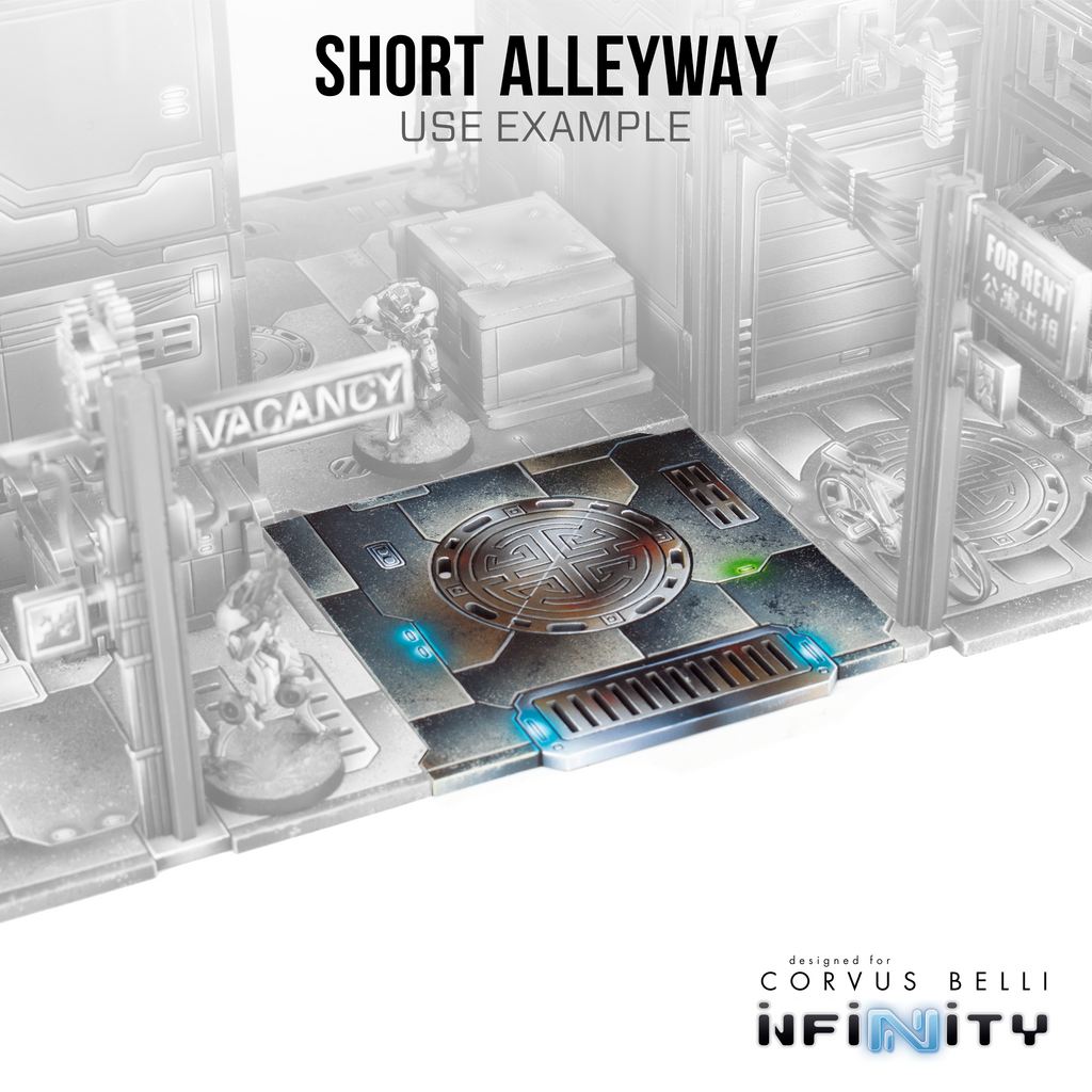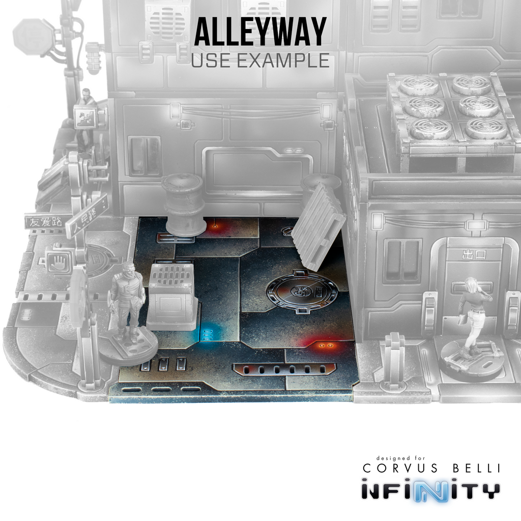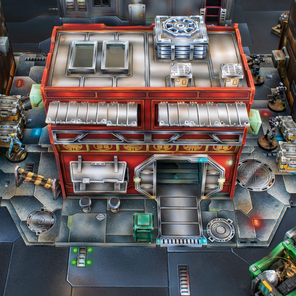 Xǐguǎn is a Yu Jing-themed urban terrain designed for Infinity the Game. The sidewalks are designed to interlock in interesting ways, to create any density of future urban sprawl that you can imagine. These MDF and Acrylic building kits are perfect for any 25-35mm scale sci-fi setting.