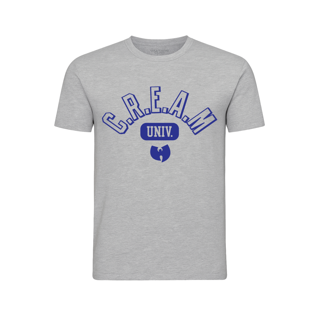 Soft, lightweight youth tee in grey with bold C.R.E.A.M. University chest print.